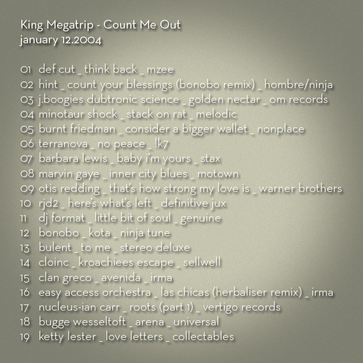 here's a nice downtempo mix I did for a friend's radio show a few years back... the radio show is gone but the mix lives on...