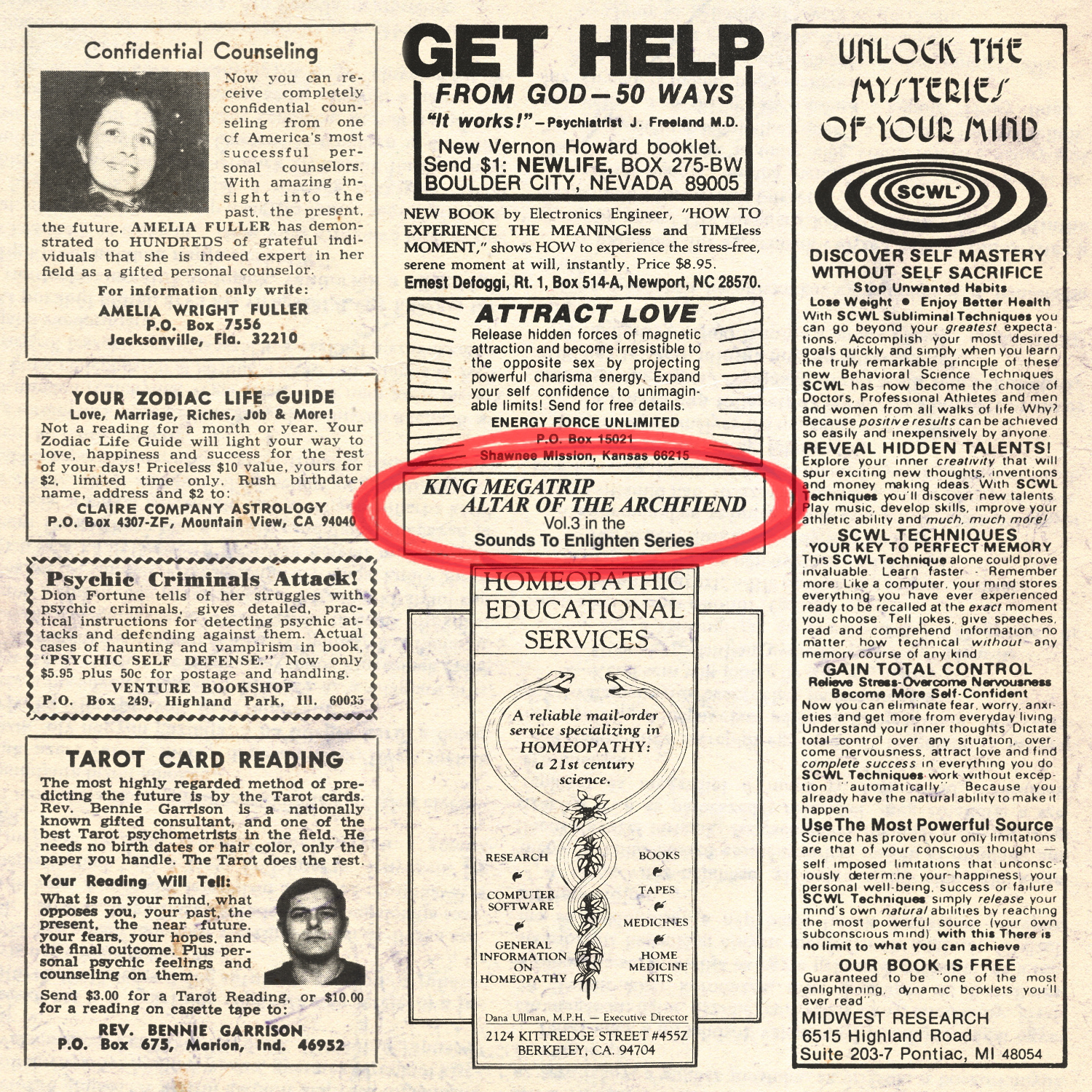 after more than a decade of mixtape retirement... King Megatrip returns with ALTAR OF THE ARCHFIEND! the third and final mixtape in the SOUNDS TO ENLIGHTEN mixtape series promoting the TALES TO ENLIGHTEN graphic novel Kickstarter campaign, ENJOY!